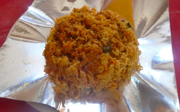 ビリヤニはたまにBirinjiと誤訳表示される。30ルピーは50円