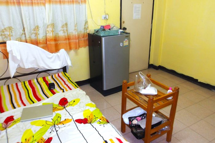 こちらは2024-2025年年末年始1カ月を過ごしたピッサヌロークの1泊120バーツ(約500円)の月極マンション。テレビも冷蔵庫も無料Wi-Fiもある20畳部屋。トイレシャワー付。