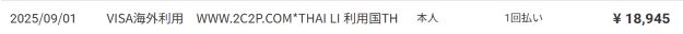 クレカ請求額なので諸税手数料すべて込の支払総額