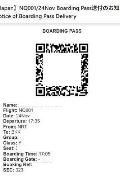 出発4時間前に自動的に搭乗券が送られてくるエアジャパンのオートチェックインは今はスワンナプームのみで、成田ではやってないようだ。オートは送られてくるのが4時間前なので前回タイ出国の時には宿のWi-Fiで確保できずに空港Wi-Fiで確保した。それより24時間前に確保できるオンラインチェックインのほうが個人的にはありがたい。前回読み取れなかった変形バーコード搭乗券のほかにQRコード搭乗券も送られてきた。預け荷物なければチェックインカウンタースルーで保安検査場(セキュリティゲート)に行けるとのこと。K席なので窓際かと期待するも窓のない窓際席だった。真ん中席よりましか。他の方より1万円以上安く乗っているので文句は言えん。夜間フライトだし。12月末のフライトは片道20万円だそうだ。ダイナミックぼったくりプライシング。