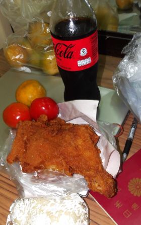 - 53番バス8 201番ピッサヌローク69 チキンカツ駅弁40 缶コーヒー20 ガパオライス弁当30 でかいフライドチキン45 カウニャウ大10 みかん1kg25