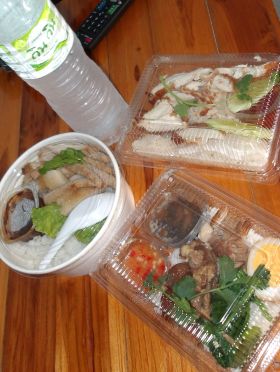 今日朝のみやっている弁当屋で弁当買う。チキンカツ弁当20B、カウカームー弁当20B、カウマンガイ弁当35Bと3つ買う。20Bのは量が少ないので1回に2つ食える。連日食いまくり。海外旅行ダイエットどこ行った。動画もページも追いついてはいないがだいぶ落ち着いた。移動が続くとネタが次から次へと洪水状態にあるので大変。普通に海外旅行するだけでも大変なのに、旅しながら、ページと動画の制作と公開なんてもともと無理なんじゃ。1日6本も動画あげんなと自分でも思う。反省してもうちょっとゆるゆる行こう。今日もしっかりお昼寝してまた少し元気になった。
