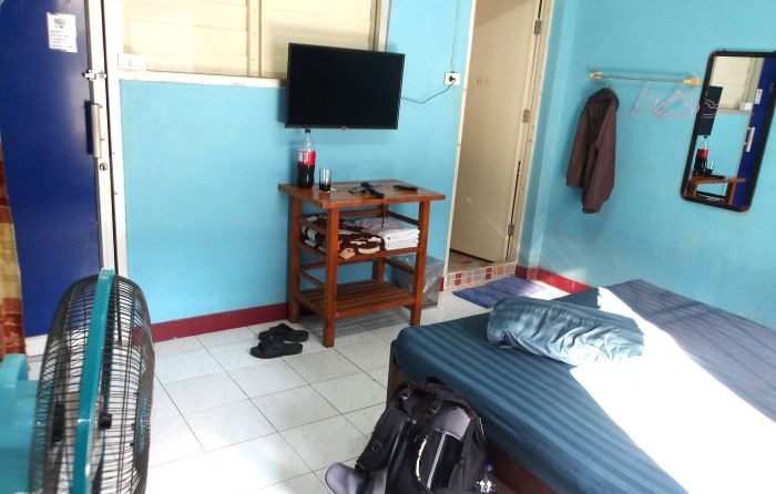 今の私には冷蔵庫よりストレスない静寂環境のほうが優先だ。昨日ここは先客で埋まっていたらしい。移動のやり取りはタイ語のみで英語は通じない。この辺の地元宿はタイ語通じないと空室あっても満室と偽って断られるらしい。トラブルあった時に言葉通じないと解決しないので。そりゃ予約サイトに登場しないわけだ。