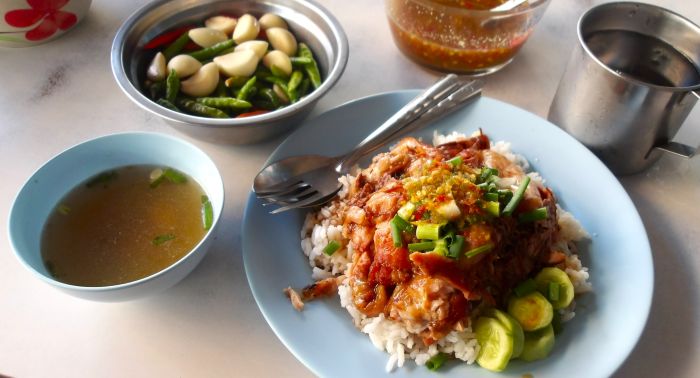 スープ付カウカームー45バーツ(220円)唐辛子食べ放題