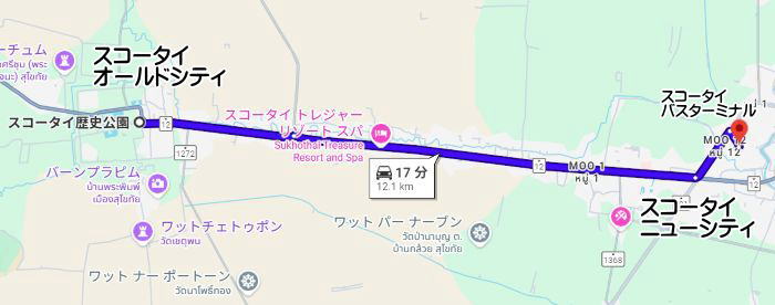 スコータイ遺跡入場門からスコータイバスターミナルまでの距離は12.1㎞。そりゃヘロヘロになるわな。
