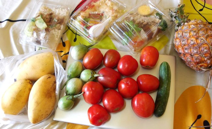 - カウマンガイ弁当20 カウカームー弁当20 エビチャーハン20 チキン串カツ10 ごはん5 マンゴ3個(1.2㎏)71 パイナップル10 短パン69 トムカーガイ25 トマト1kg