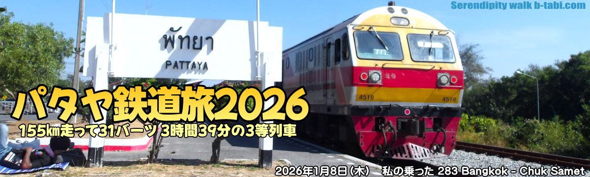 バンコクからパタヤには鉄道で行ける。155㎞の距離を31バーツ(155円)。1日1本平日のみのバンコクホアランポーン駅発チュックサメット行283番列車で。ネット予約はできず当日駅のチケット窓口でしか買えない。早朝6時55分発なので早起き必要。土日には別の急行列車が出ているが小銭高い。