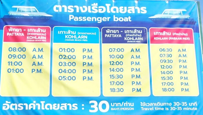 ●2026年1月現在 30バーツのラン島行地元船時刻表