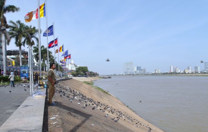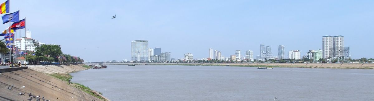 王宮前トンレサップ川河岸 奥に高層ビル 2026/1/22