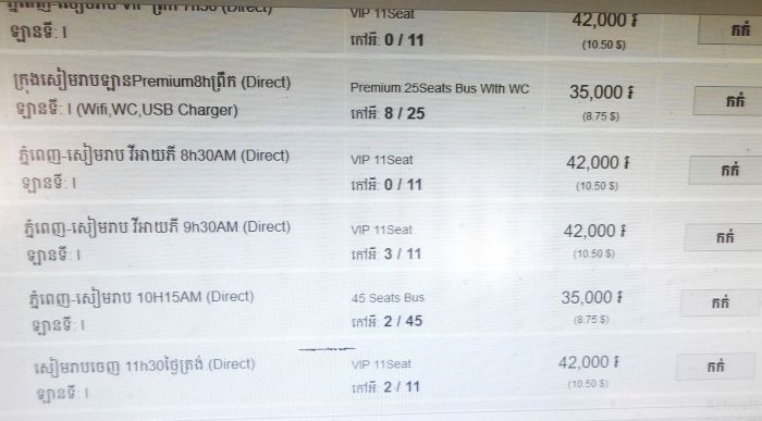 こちらはキャピトルバスミニバンバス42000リエルだがこれはシェムリアップまでの料金。距離半分のコンポントムも同料金。