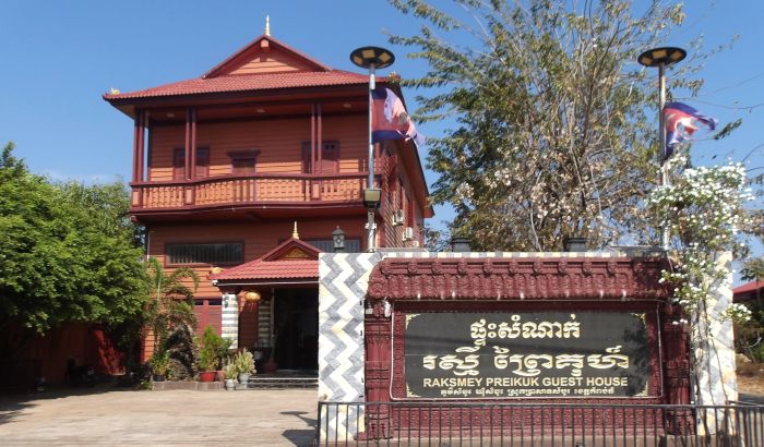現在宿泊中の1泊975円の地元ホテル Raksmey Preikuk Guest House 遺跡まで3㎞ 無料Wi-Fiあり。英語不可。