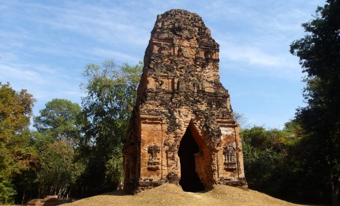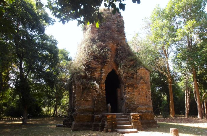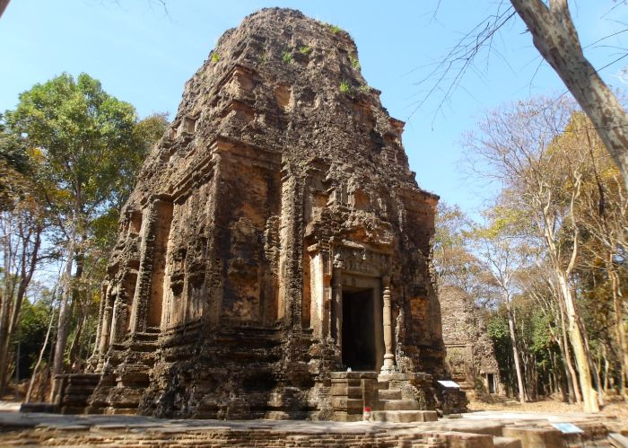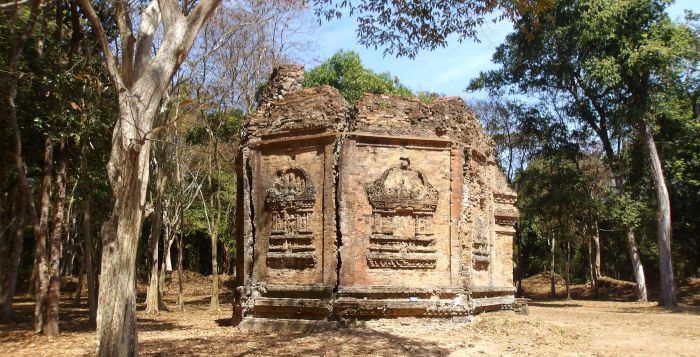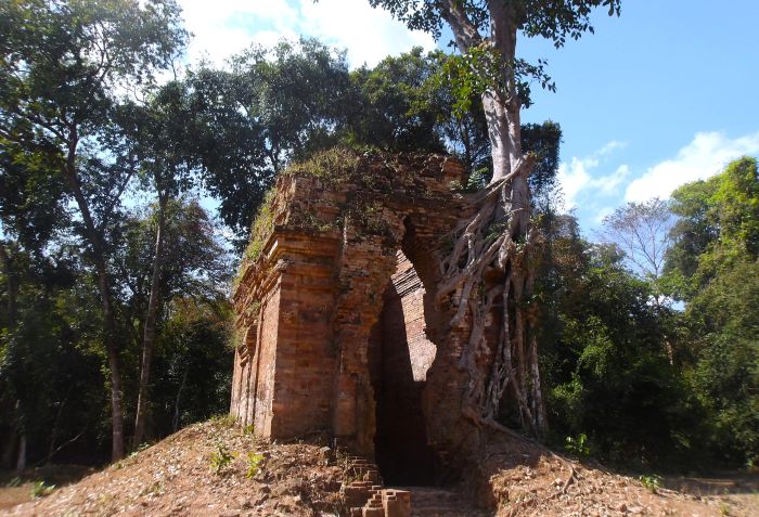 午前中サンボープレイクックホテルから脱出してコンポントムに戻ってくる。帰ってくる途中に周辺遺跡の Prasat Srei Kroub Leak ប្រាសាទស្រីគ្រប់ល័ក្ខណ៍ など回ってコンポントムに向かう。ジャングル遺跡で異次元深度強烈だった。
