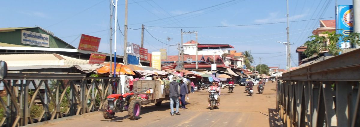サンボー村近くのセン川にかかる橋とその脇の市場 Kampong Chheuteal market コンポンチュティル市場 2026/1/29