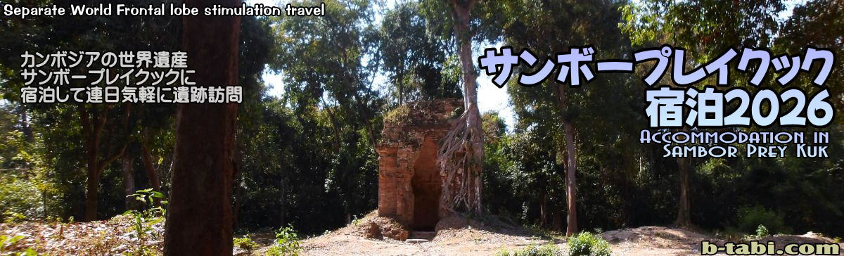 シェムリアップから日帰りするツアーが一般的なサンボープレイクック。その遺跡脇3㎞にある地元ホテルに宿泊。2026年1月27日~1月30日の3泊4日のサンボープレイクック宿泊自力ツアー実録。日帰りツアーのような6時間車内監禁で遺跡滞在10分の難点はなく、遺跡でゆるゆるコーヒー飲みながら何時間でも過ごせる。