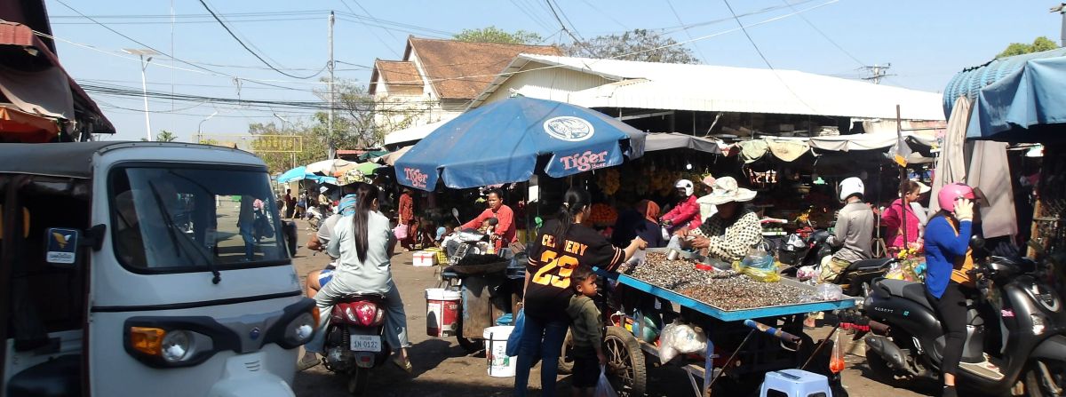 サンボー村近くの市場とセン川にかかる橋 Kampong Chheuteal market コンポンチュティル市場 2026/1/29