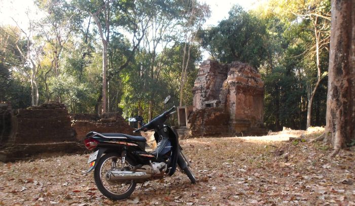 昨日のサンボープレイクックからの帰りのバイクツーリングもコアなゾーンに入り込んだ。午前中、ついでに寄った脇道からかなり離れたところにある遺跡による。結構なジャングルロードをバイクで激走。本当にこんなところに遺跡なんてあるのか?と不安になったころに目の前に結構な規模の遺跡。これってサンボープレイクックなの?とも一瞬思った。確かに周辺遺跡群のようだ。今回でサンボープレイクック6回目の訪問となるが、初めての遺跡だった。しかし1050年も前によくこんな所にこんなもん作ったなと妙な感動。
