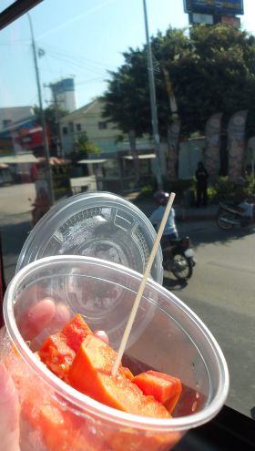 今キャピトルバスに乗ってホーチミンに向かっている。プノンペン市内は渋滞が多くなかなか進まない。車窓から見る高層ビル群が、ここ本当にプノンペンと思わせる。プノンペンで思う事。みな長ズボン。みなバイクか車に乗っていて歩いている人がいない。3列席バスが豪華で別な意味で異次元。郊外に入ってやっと渋滞から解放され、普通に動き出した。