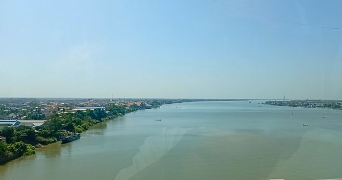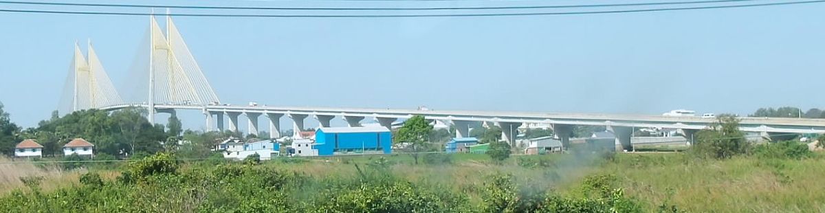 スヴァイリエン郊外メコン川にかかる翼橋横断中。日本の120億円無償援助で2015年に開通。そういやここはミニバンバスごと船に乗った記憶ある。ブンタオ・ダウェイ回廊実現は遠のいたけど。