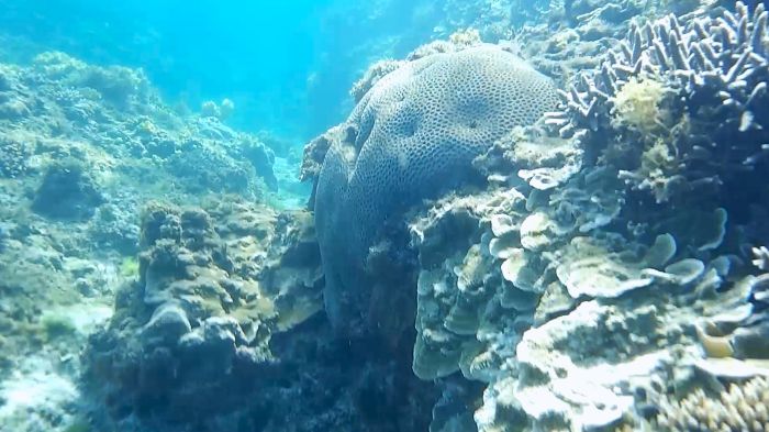 宿泊のホテルから珊瑚礁のあるポイントの浜辺まで結構距離があって、そこまで自転車で行くのが大変。てっきり 宿のおじさんがバイクで送迎してくれるものかと思ったのにそういうことも全然なく、しかもポイントビーチ着いてから、沖までボートで行くのかと思ったら自分でサップボードを漕いで沖まで行くという味のある展開。