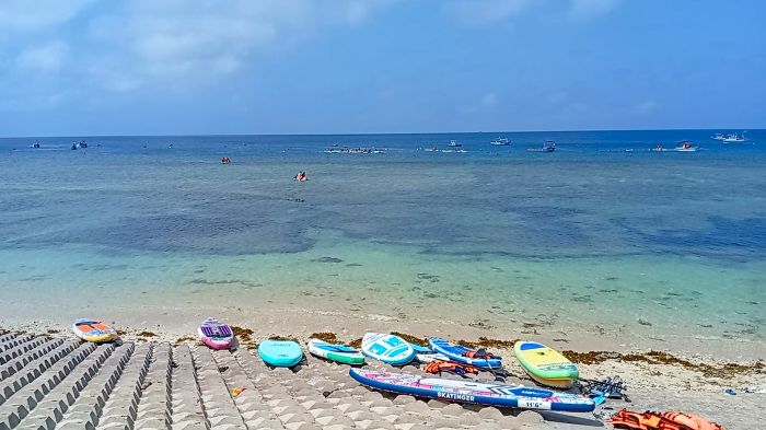 ただ沖に珊瑚礁のあるポイントに自力で自転車で行ってそこで自力でサップボードパドリングして沖へ行く。そこでシュノーケリングギアやサップボードを借りて自力で潜るという味のある体験。ホテルからポイントまでの送迎もない。船であちこちポイントを回るということもない。今まで体験したことのない味のあるツアーだった。これなら別にツアーに参加しなくても自分でそのポイントビーチに行って自分で泳いでいけばいいのではないかなとは思ったけど。ただ1500円のツアーなので、まあ、これはこれでいいのかなとも思ったけど。サップボードは今回初体験。