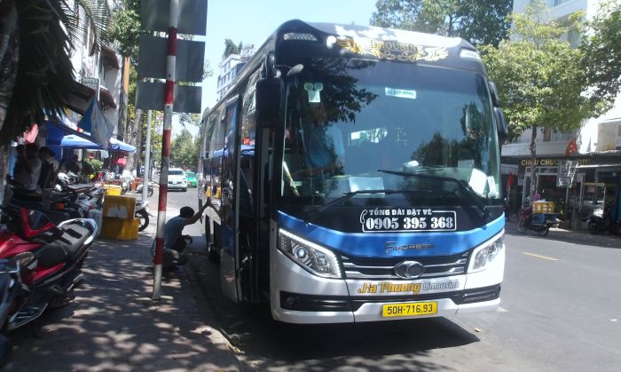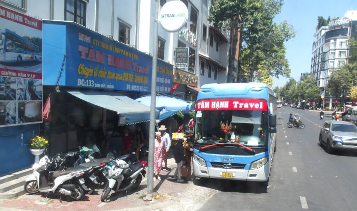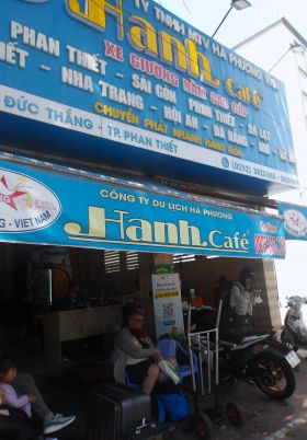 ファンティエットのハンカフェ乗場。隣は別会社。バスはぼったくりエリアのムイネー発のようだ。