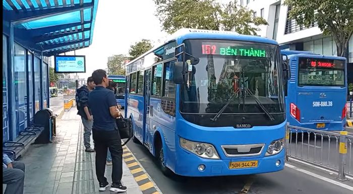 109はサイゴンバスターミナル始発だが、152はベンタイン市場脇乗場通過なので空港から遠ざかる反対方向も来るので注意。また109は第3ターミナル行。152は国際線第2ターミナル行。ターミナル間は無料シャトルバスが出ている。
