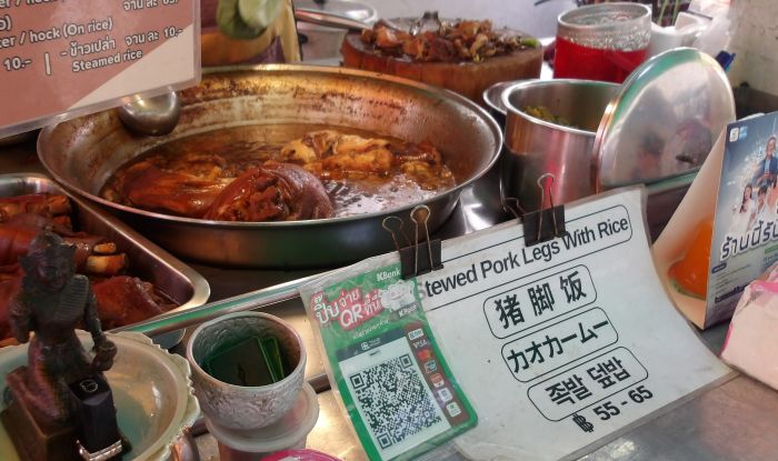 - ソムタム40 ムーピン2本20 カウニャウ2個10 アイスエスプレッソ中20 水7 カウカームー55 フライドチキン2個30 肉野菜炒め定食50