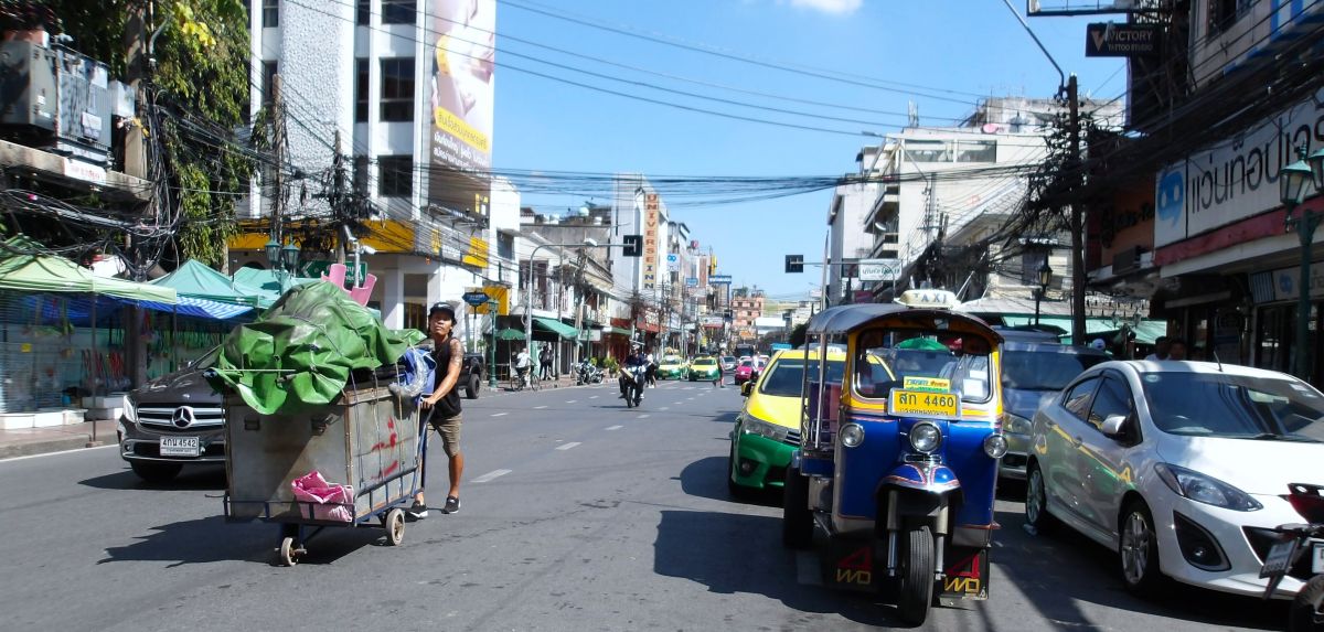 カオサン通り 晴れていてもまだ空が白い。11月27日