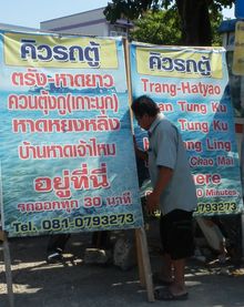 ロットゥー行き先表示はタイ語のみ。長距離バスと違って英語併記されていない。その他車内で英語が通じないなど全体的に外国人仕様にはなっていないのでタイ語は若干必要。