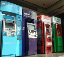 今日2014年1月25日私が利用したATMは左から2つ目の紫色、サイアムコマーシャルバンク Siam Commercial Bank のATM。