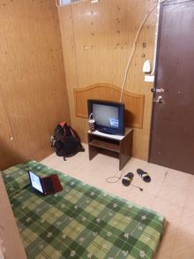 現在宿泊中の200Bの独房。シャワーはついているがトイレは共同。部屋にこもったまま24時間無料ワイファイにつながる。