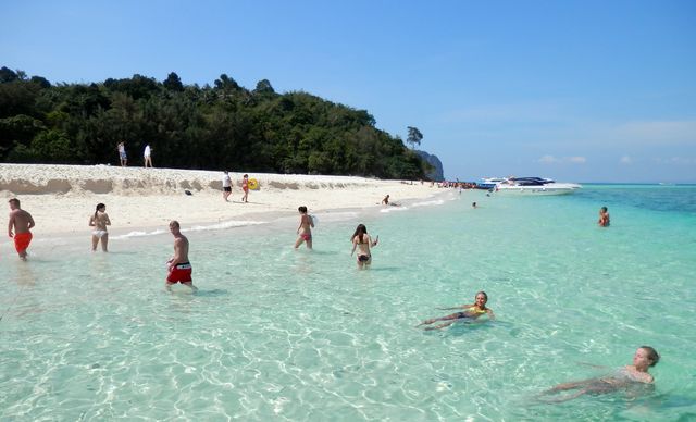 バンコクやプーケットが乾季を迎える11月~1月にもサムイ島では降水量は多く、南国の青空は望めない。5月~8月は雲は多めでも晴れ間が全くない訳ではない。3日曇って1日かろうじて晴れるような状態が続く。現地の営業トークはこの期間を無理やり乾季とこじつける。しかしビーチに行ってドン曇りなら、それは旅行者側から見ればどんなもっともらしい説明をされても間違いなく雨季だ。少なくとも下のバンブー島(ピピ島脇)のような完全乾季、連日ド快晴の海のキラキラ感は5月~8月のサムイ島にはない。