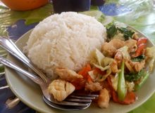 タイの肉野菜炒め定食 タイは飯がうまいので痩せにくい。