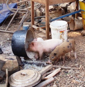 今日2月2日の軍事演習。ストゥントゥレン郊外で。カンボジア軍ってすげえヘリ持ってんだな。こいつのために4時間も待たされた。 またとんだ災難に見舞われている。今プノンペン行きのバスの中。ラタナキリ方向への分岐点で立ち往生。俺の乗るバスって何でいつもこうなんだ。バスに乗ってさあ今日はプノンペンだと意気揚々と出発して30分でバスが停まる。立ち往生してからもう既に2時間にはなるか。今日中にプノンペンにたどり着けるんだろうな。 警官が道路を封鎖していると思ったら、でっかいヘリコプターが500mくらい先の道の真ん中に停まっている。軍の演習か?警官だけじゃなく軍の車が行きかっている。とりあえずあのでっかいヘリコプターが飛び立たなければ先に進めそうにないのだが、今の感じでは当分飛び立ちそうにない。どうしようもないのでパソコンでもいじることにする。ストゥントゥレンからクラチェ方向へ行く道はこれ1本で、ほかの道はないようだ。最悪ストゥントゥレンに引き返しもあるかも。 加えて今の席、2人席なのに子供連れのお母さんが隣に来て、4人で座る羽目に。一人分料金で乗車のようで子供には席はないらしい。3歳と8ヶ月って感じの2人の子供。これじゃあ9人乗りに24人って言うのと変わんないギュウギュウ詰めじゃん。しかも俺の席だけ。ついてねえ。バスは地元民が9割って感じ。 ストゥントゥレンからプノンペン行きのバス、10$。警官の道路封鎖のために足止め中 今朝はかなりの冷え込み。深夜から明け方まであまりに寒いのでTシャツ1枚では寝れんかった。日本で空港まで用に来ていたウインドブレイカー着込んで寝る。 お、バスのエンジンがかかったぞ。出発のようだ。助かるぜ。3時間立ち往生ってとこか。その程度ならまあ許すぜ。隣の8ヶ月のガキがパソコン珍しそうに覗き込んでる。 足止め中暇なのでこいつらとを観察。鍋ひっくり返して中のおかゆむさぼり食う。いいのか?近くに店の人いるのに我関せずと放置状態。 おとがめないので遠慮なく。 いっぱい食ったのでもう寝る。 PM1:38 今クラチェを出てプノンペンに向かっている。軍事演習通行止めでは4時間足止め食らう。結局軍事ヘリの横を通って行く。そんならもっと早く通せよ。クラチェについたのは午後1時5分、所要6時間。でも足止めの時間を除く実際の移動時間は2時間。やはりすっ飛ばしていけばストゥントゥレンからクラチェまでは2時間で着くんじゃん。道は今のとこすごくいい。来る時はクラチェにつく直前ずいぶん道が悪かったんだが、違う道を行っているのかな。来る時は6時間かかったので、この感じでは午後7時のプノンペン着になりそう。クラチェを過ぎて乗客は若干減った。何よりずっとわき腹のとこに3歳の少年の頭が押し付けられた状況ではなくなったのがありがたい。